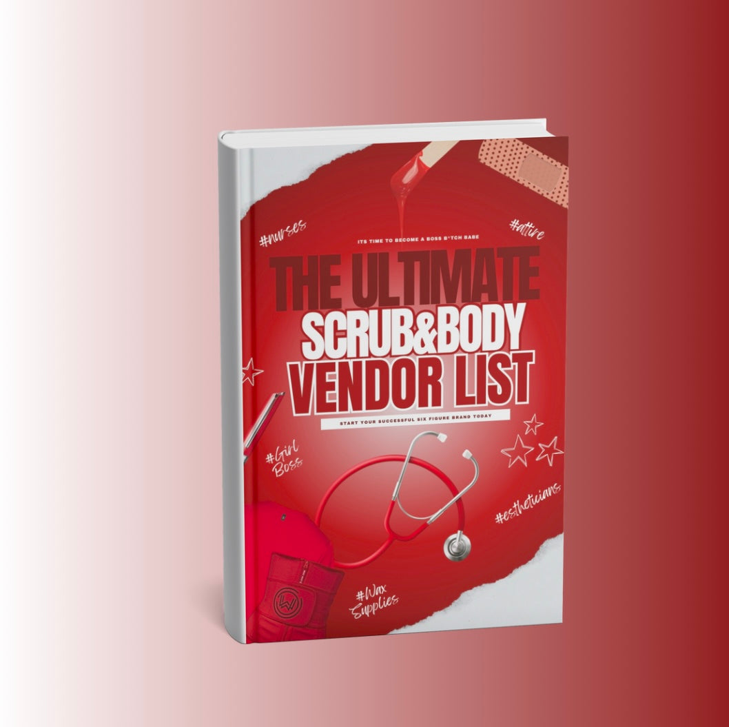This vendor list includes a range of nursing equipment, scrubs, medical shoes, waxing supplies, esthetician supplies, waist trainers, and weight loss pills & supplements, offering high-quality products to support businesses in the healthcare, beauty, and wellness industries.
